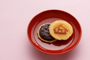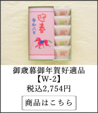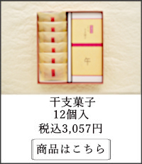 開運招福を願い、干支の焼印を押した玉子せんべいで備中大納言をはさみました。しっとりして味わい深い干支菓子は年賀の御挨拶の好適品でございます。