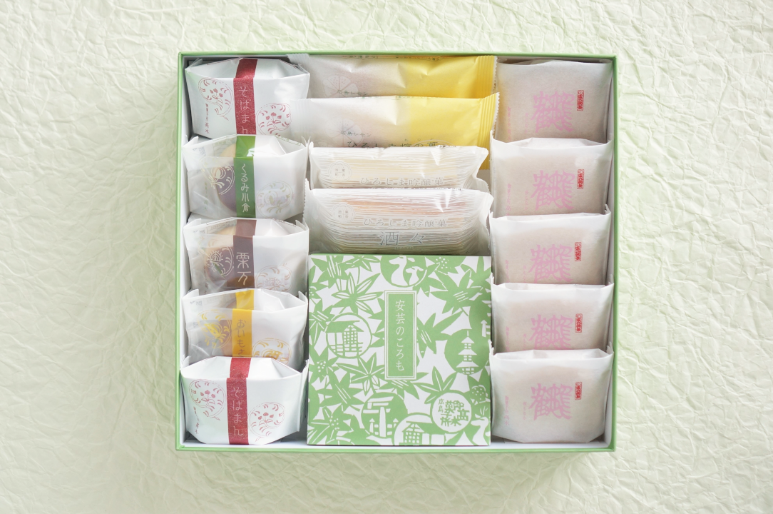 日保ち鶴亀もなか・ひろしま吟醸菓酒々/製造日より20日間 ひろしま檸の菓/製造日より15日間 安芸のころも/製造より40日間 焼菓子4種/製造日より30日間