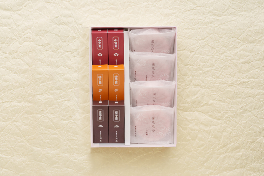 内容量菊もなか4個(小倉・挽茶各2個)小型羊羹6本